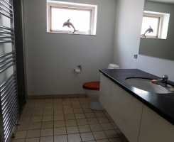 Gæsterne har egen indgang. En fordelingsgang fører til de 3 værelser, til gæsteafdelingens eget badeværelse og til køkkenet. Køkkenet er fælles for hele huset. Her er opvaskemaskine, spiseplads til 8 gæster og sofahjørne med TV. Der er muligt at vaske tøj. Gæsterne har ligeledes adgang til den traditionelle landhave med overdækket terrasse og mulighed for at grille sin aftensmad.